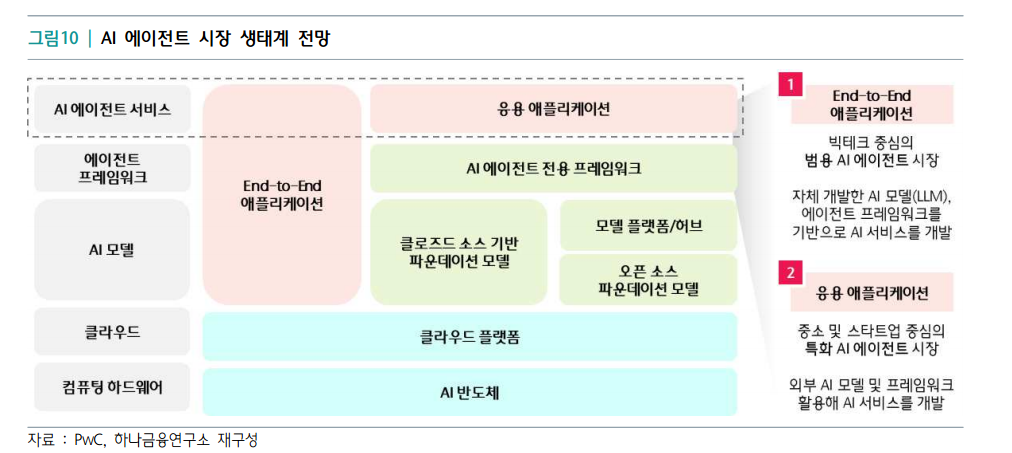 - 기술 발전에 따라 에이전트 시장의 확대가 예상되며, AI 에이전트 생태계는 범용과 특화의 이원화 구조로 진화할 전망임