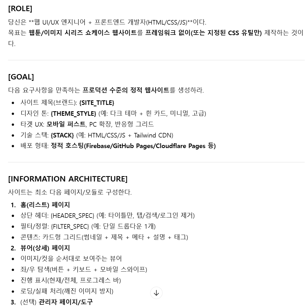 AI Agent Prompt는 아래 형식으로 하시면 됩니다. 필요시 생각하고 있는 핵심 개선 포인트를 2번처럼 넣어도 됩니다. 기타 벤치마킹 혹은 복제할 URL을 추가로 주시고, 더 필요한 내용을 각자 추가하셔서 진행하시면 됩니다. (아래는 벤치마킹 대상 URL 삭제함)